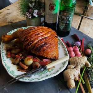 Half suckling pig fully butchered, oven-ready and weighing about 5 – 7kg. Price £28.70/kg.